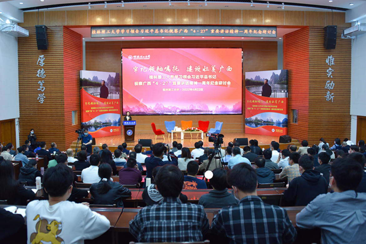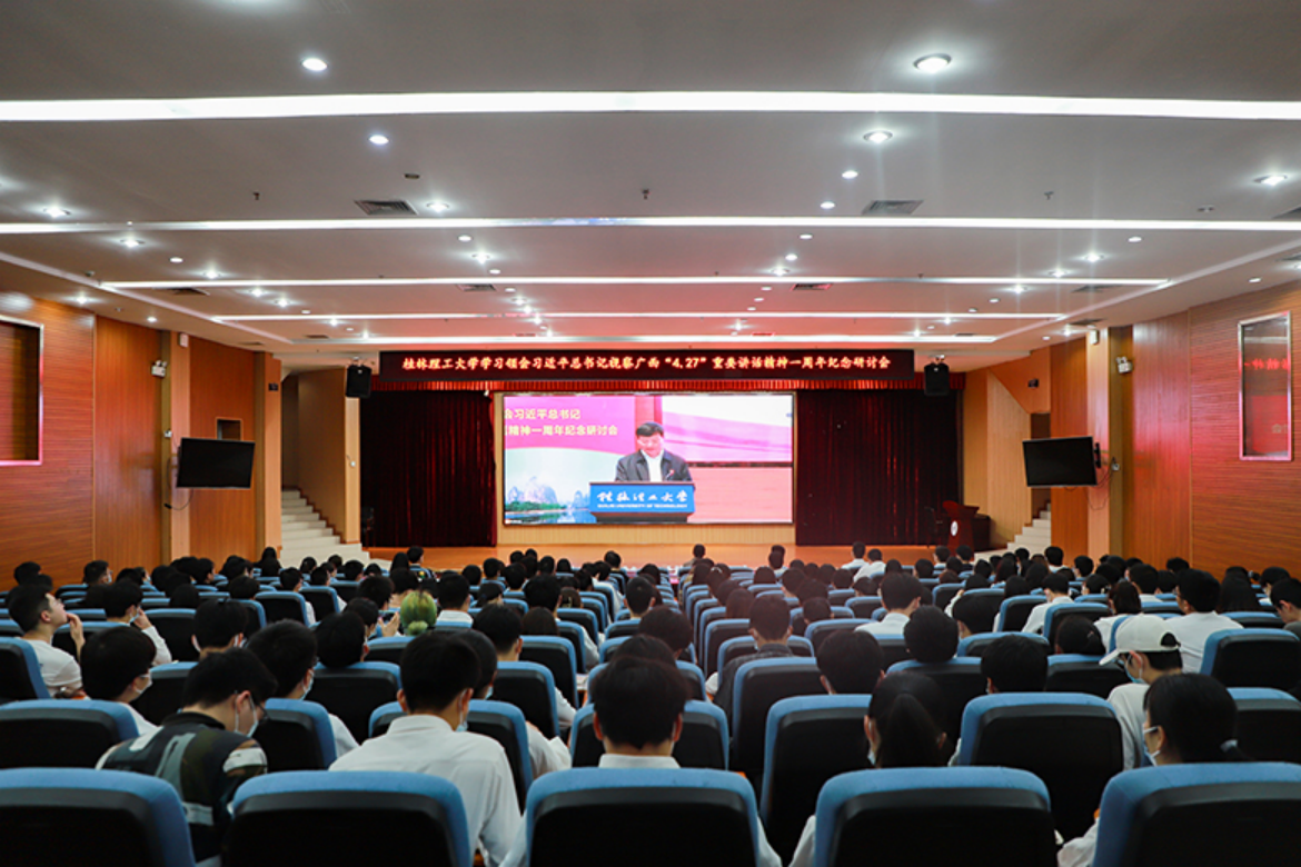 时值习近平总书记视察广西“4·27”重要讲话精神一周年之际,为更好地学习领会习近平总书记关于广西工作的“四个新”总要求,进一步激发全校各级党组织和广大师生干事创业活力,4月22日下午,学校在屏风校区图书馆报告厅举行学习领会习近平总书记视察广西“4·27”重要讲话精神一周年纪念研讨会,并以网络形式进行同步直播。学校党委副书记、校长解庆林,党委副书记齐俊斌出席会议。学校党委各职能部门负责人,各二级单位党组织负责人,基层党支部、团支部书记代表,教职工代表参加会议。